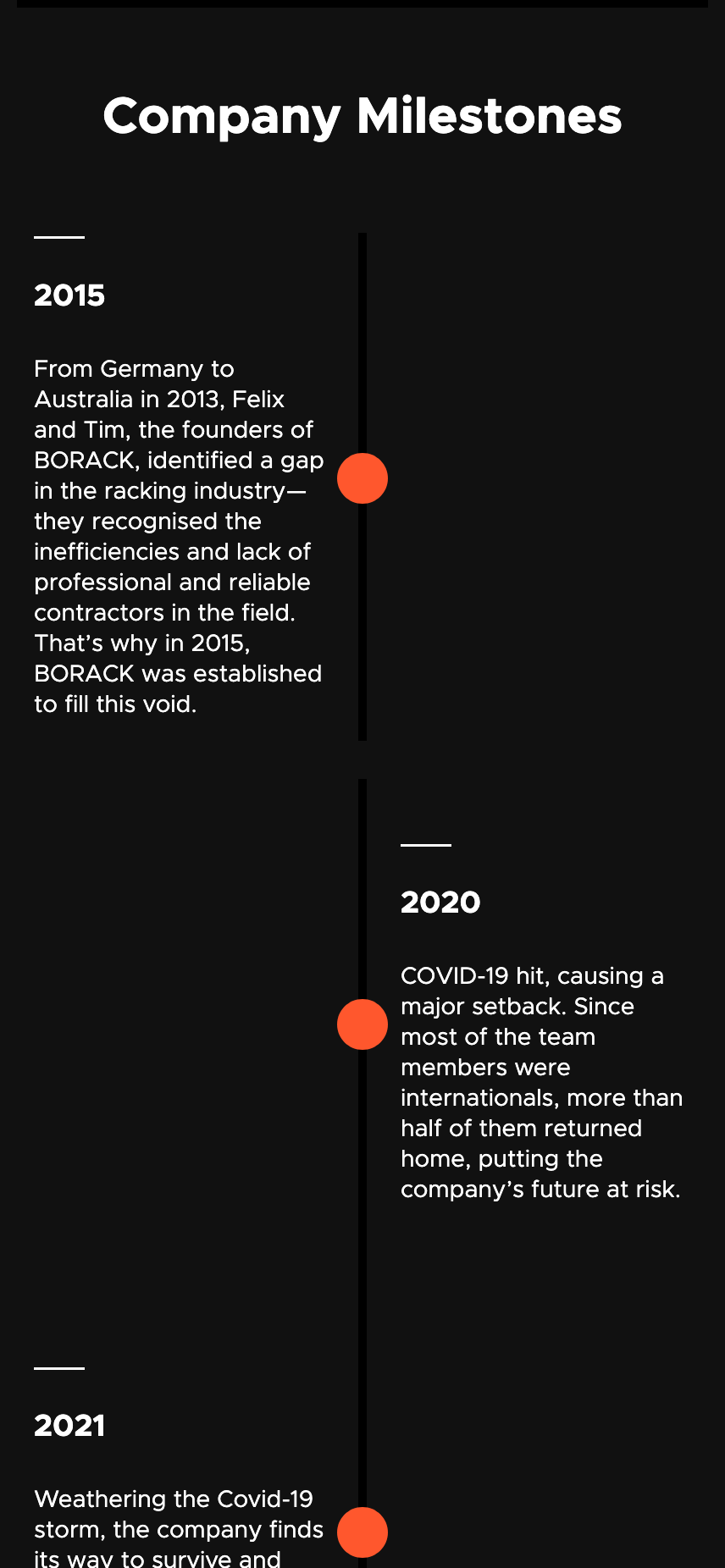 We worked with Borack to build their re-brand from the ground up shaping their digital identity, visual narrative, designing and developing their website in Webflow. We began by understanding the business and audience, finding the emotional connection between the two, and defining what makes Borack stand apart as the category leader in Warehouse and Pallet Racking Installations. From there, we built a clear positioning, a visual identity, and a brand that feels bold, credible, and forward-thinking.